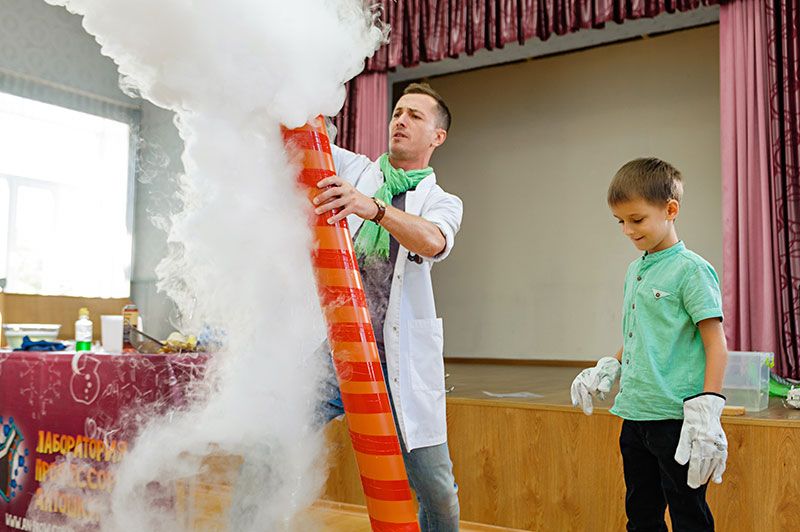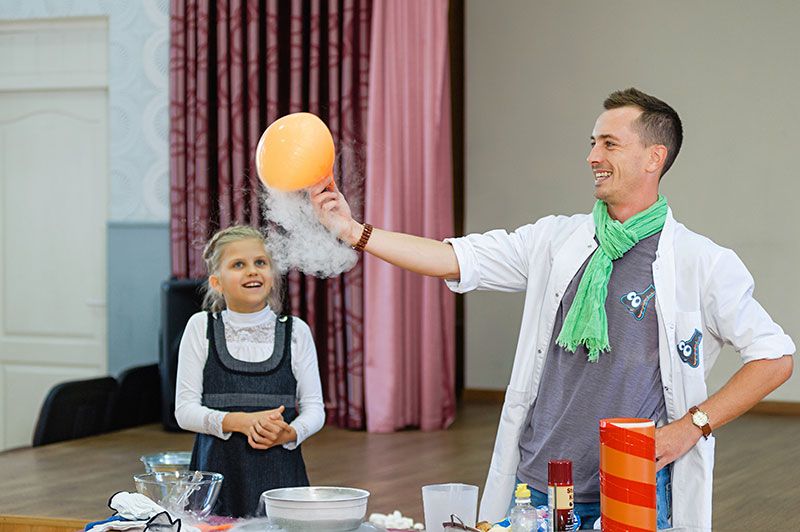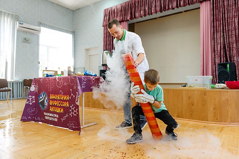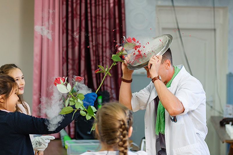 В невероятном крио-шоу вы сможете заморозить банан и забить им гвоздь, создать эффект Лейденфроста, и даже разбить хрустальную розу об голову профессора! А самое вкусное — это приготовить крио-мороженое на основе свежих продуктов, с помощью заморозки жидкого азота. Это очень эффектно и познавательно. А самое главное безопасно, ведь к вам приезжают настоящие профессионалы!