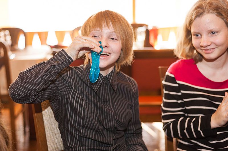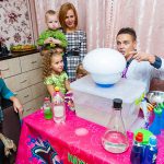 Интерактивные опыты сопровождаются морем улыбок и интереса, которые появляется у детей на протяжении всей программы. Юные исследователи смогут провести ряд экспериментов с сухим льдом, обучатся мастер классу, сделают настоящую химическую реакцию, выпустят джина и загадают желание, а именинник приготовит себе подарок супер-Лизун.
