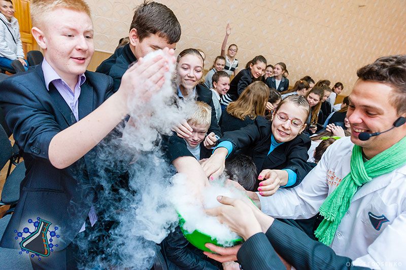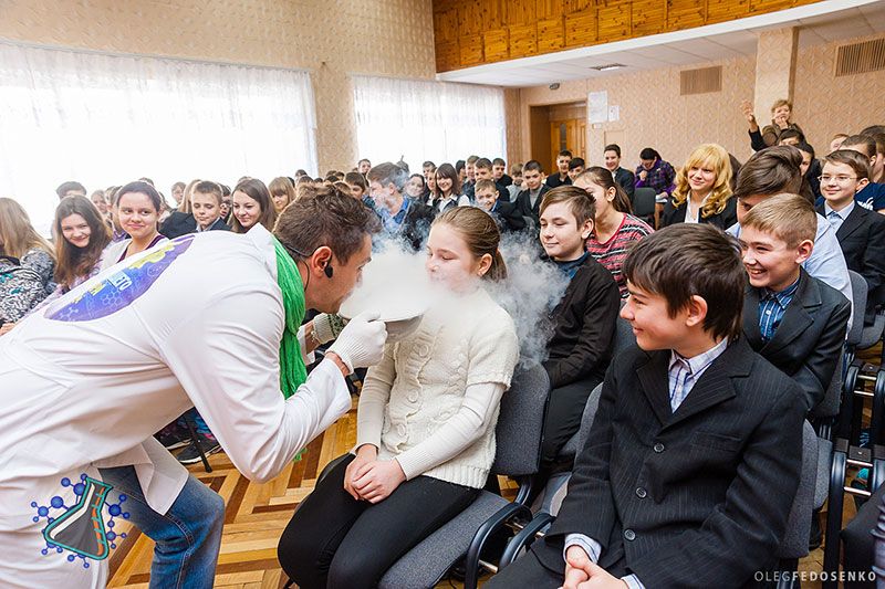 Это научно-познавательное шоу, которое рассчитано для большого количества зрителей, от 50 до 150 человек.