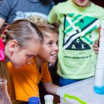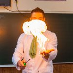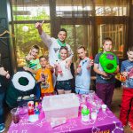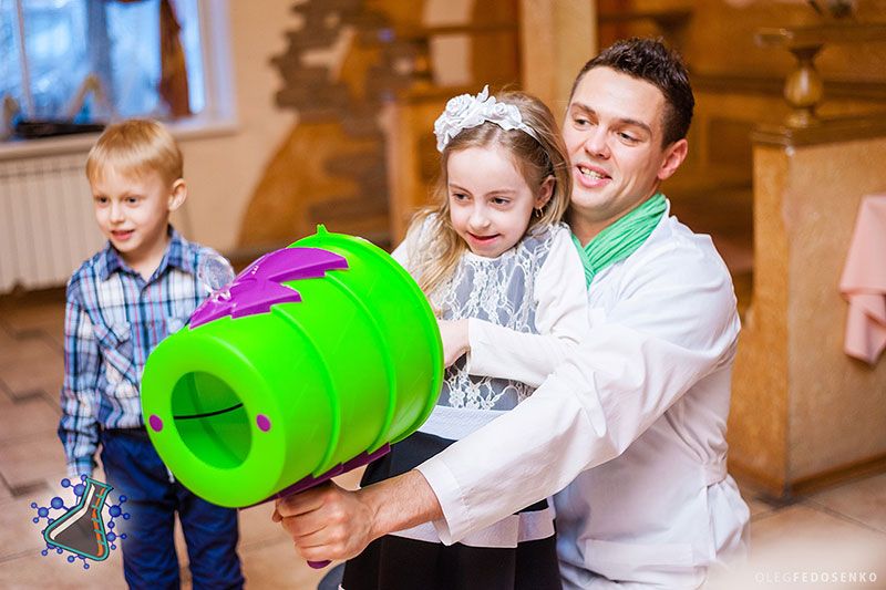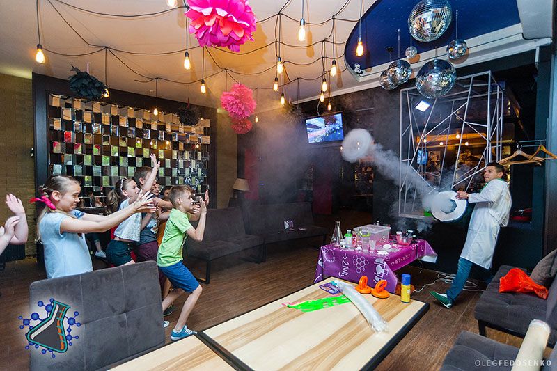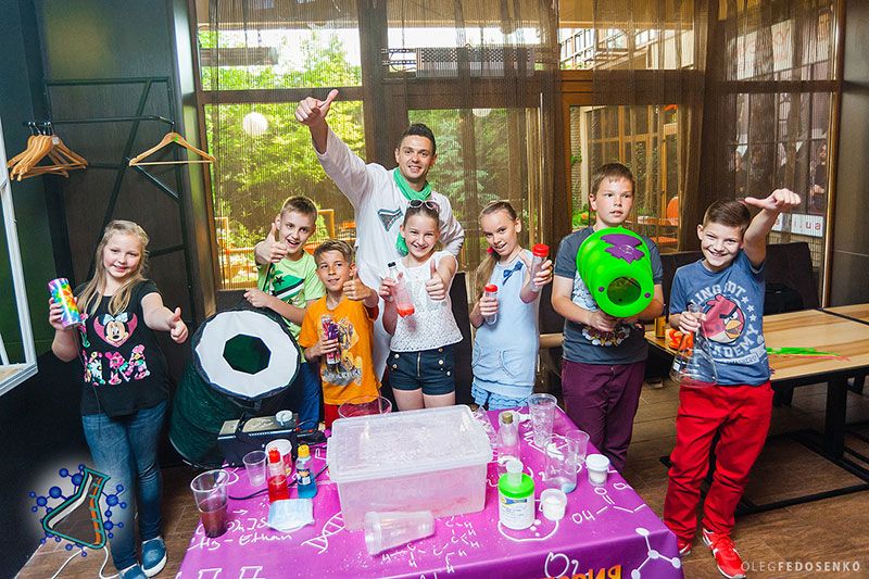 Участники смогут погрузиться в увлекательный мир науки и провести больше десятка экспериментов. Заставить жидкость поменять цвет, поджечь пузыри в руках, проверить кто сильнее, увидеть радугу, приготовить искусственный снег, а именинник сделает ХэндГам своими руками. Каждый участник приготовит себе подарок полимерного червяка и заберет его домой, и поучаствует в эксперименте гигантская пушка.