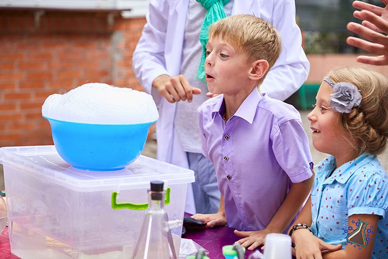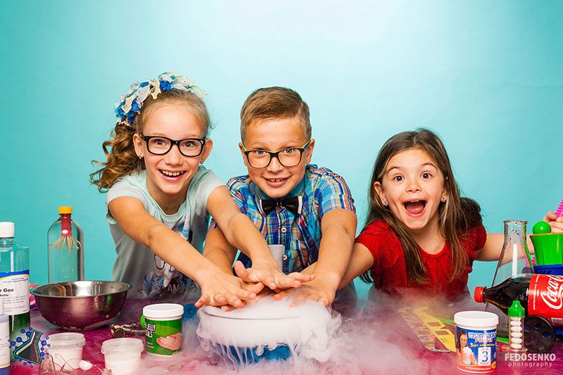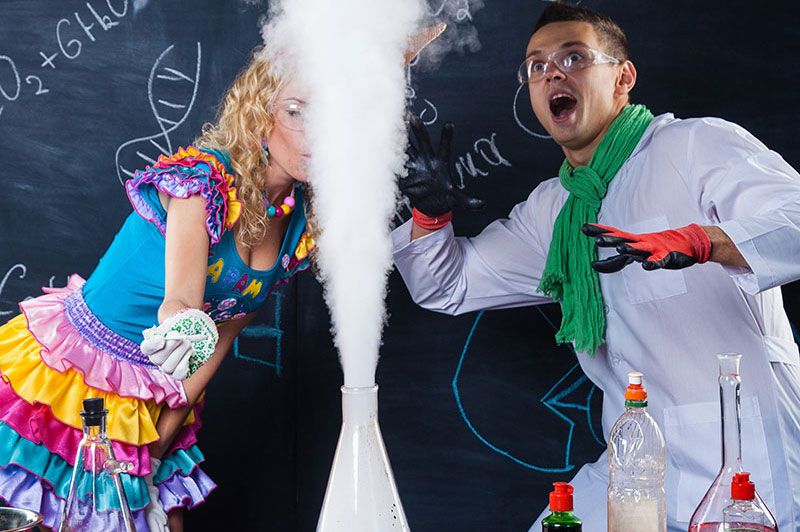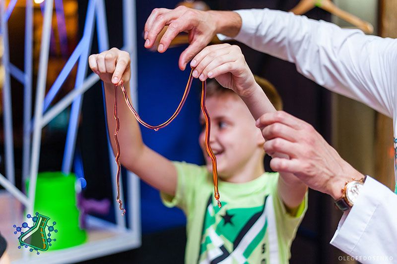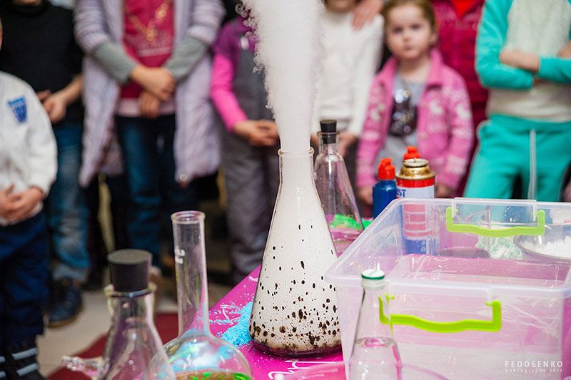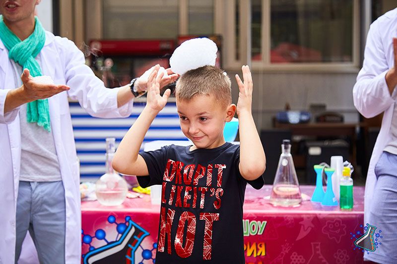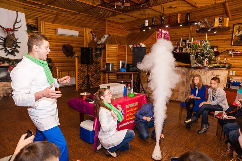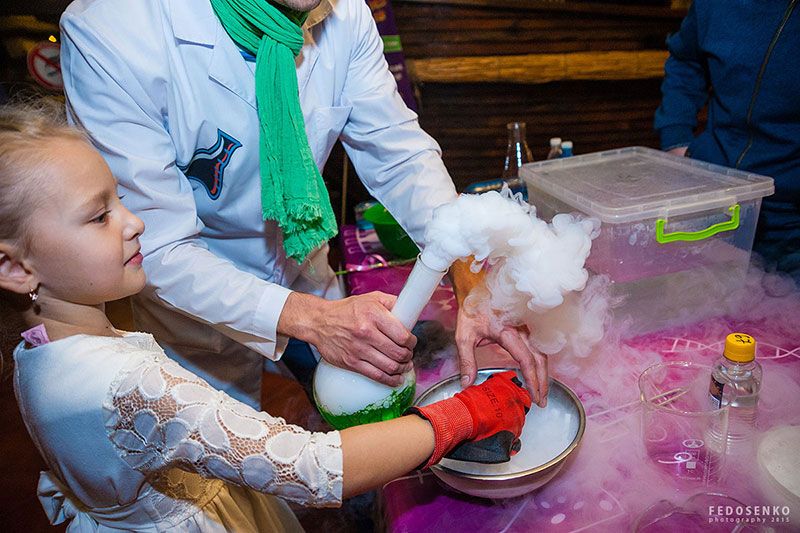 Шоу-программа, которая включает самые яркие опыты и эксперименты с сухим льдом, таинственным огнем, невидимым воздухом, полимерами, искусственным снегом, мастер-классом и настоящими химическими реакциями, а также научными подарками.