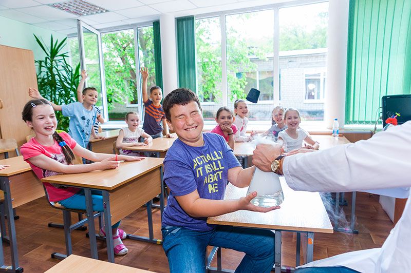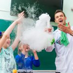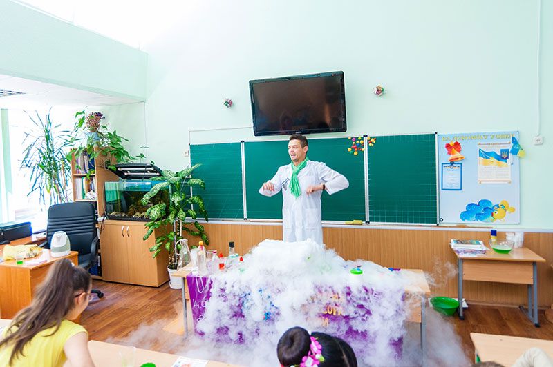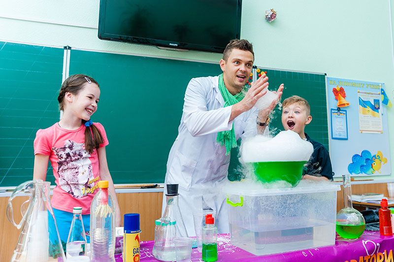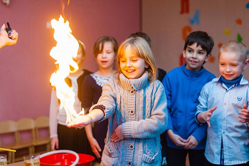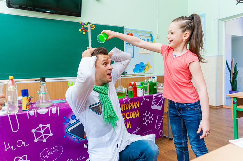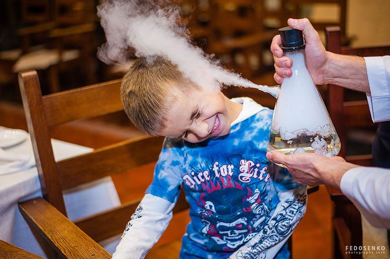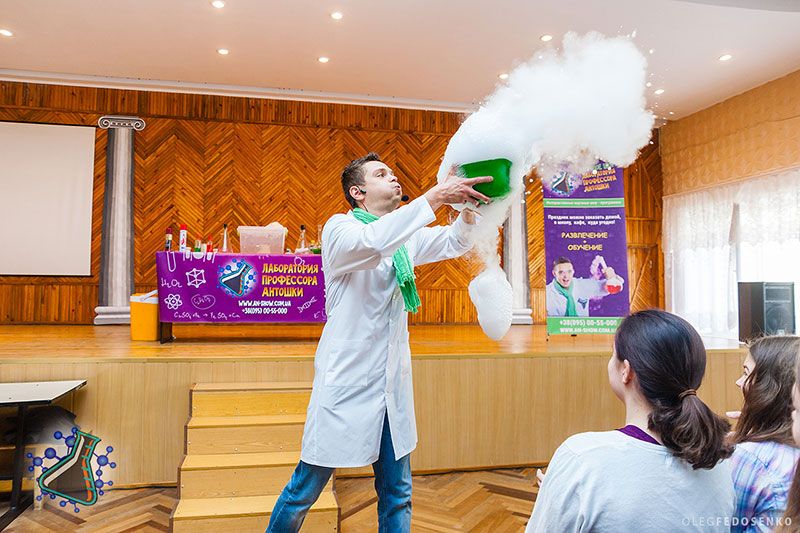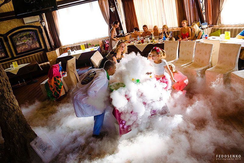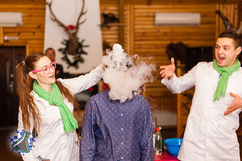 Шоу-программа отлично походит для большого количества детей, все участвуют в захватывающих опытах, химичат с сухим льдом, холодным огнем и искусственным снегом. Каждый участник приготовит себе подарок полимерный Лизун и еще множество опытов.
